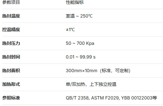超长热封面与定制化: 标准300mm长度热封面支持多试样同时对比;更支持热封面积、热封面形状(平面/花纹)的深度定制,可直接为果冻杯盖、酸奶杯、软管封尾等异形包装开发专用夹具。